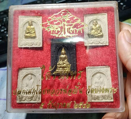 พระเนื้อผงพุทธคุณ ใต้ร่มไทร ชุด 5 องค์ หลวงพ่อเปิ่น วัดบางพระ ปลุกเสก ๕ ธันวาคม ๒๕๔๒ สวยกล่องเดิม
