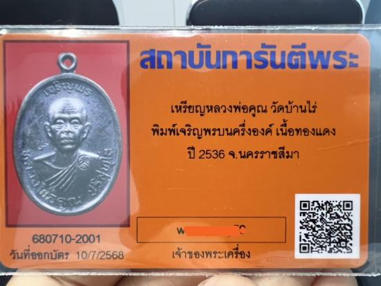 เคาะเดียว เหรียญเจริญพรบน หลวงพ่อคูณ วัดบ้านไร่ ปี36 เนื้อทองแดง บล็อก ม.ขีด นิยม พร้อมบัตรรับรองสถาบัน |