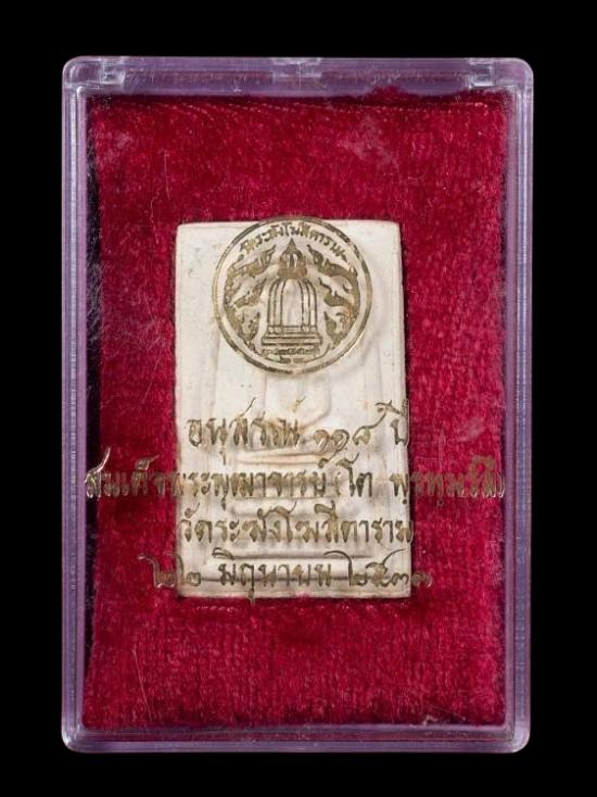 พระสมเด็จรุ่นอนุสรณ์ 118 ปี วัดระฆัง พิมพ์ปรกโพธิ์ พร้อมกล่องเดิม (สมบูรณ์เขี้ยวไม่หัก) หลังตรายางสีน้ำเงินอมม่วง