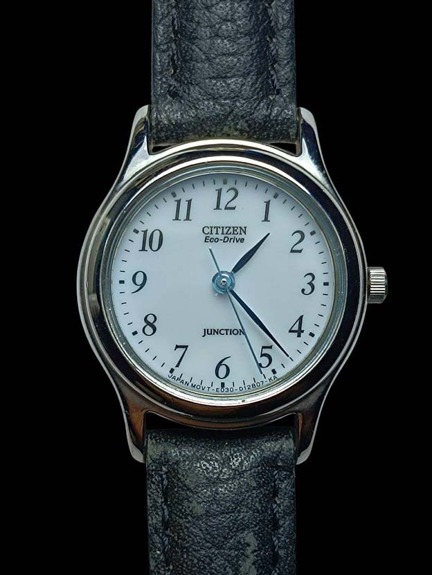 นาฬิกาข้อมือผู้หญิง ยี่ห้อ CITIZEN ECO DRIVE รุ่น E030-S93924 HSB ขนาดตัวเรือน+เม็ดมะยม 25.5 มม. สายหนังขนาด 12 มม.-ปลายสายขนาด 9.5 มม. เครื่อง Japan Movt กลไก ECO DRIVE (พลังงานแสง) เดินปกติ ไม่ผ่านการใช้งาน |