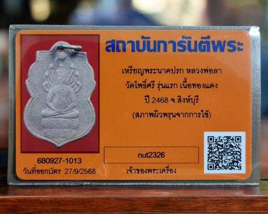 เหรียญหลวงพ่อลา วัดโพธิ์ศรี รุ่นแรก ปี 2468 จ.สิงห์บุรี |