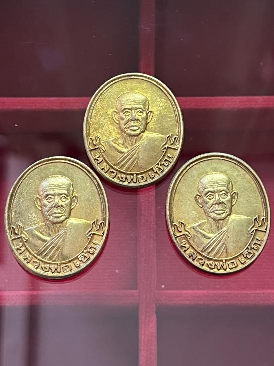 เคาะแรก..เหรียญโบว์ เนื้อทองเหลือง ปี 2535 หลวงพ่อเชิญ วัดโคกทอง 3 เหรียญ |