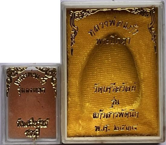 พระปิดตาแก้วสารพัดนึก หลวงพ่อแก้ว วัดเครือวัลย์ ปี 2538 +พระปิดตา หลวงพ่อแก้ว วัดเครือวัลย์ รุ่นผงหยก เคาะเดียว |