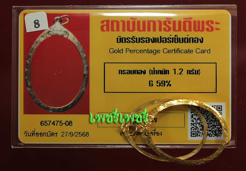 กรอบทองคำมือ2 เปอร์เซ็นต์ 59% หนัก1.2กรัม ขนาดหน้าจอกว้าง2.1 สูง2.8เซ็นต์ ด้านข้างหรือความหนา กว้างถึงรอบพับ 0.5เซ็นต์ พร้อมบัตรรับรองจากการันตีพระสบายใจได้ ค่ะ |