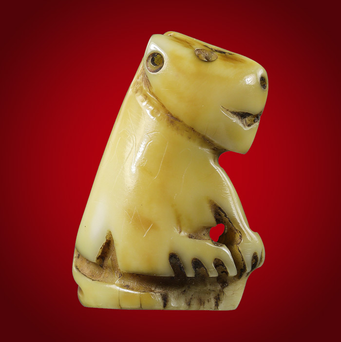 เสือ แกะจากเขี้ยว พิมพ์ปากหุบ(ไม่ทราบที่สร้าง) ขนาดเสือฐาน 1.8cm สูง 2.6 cm |