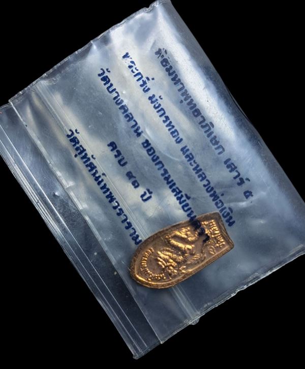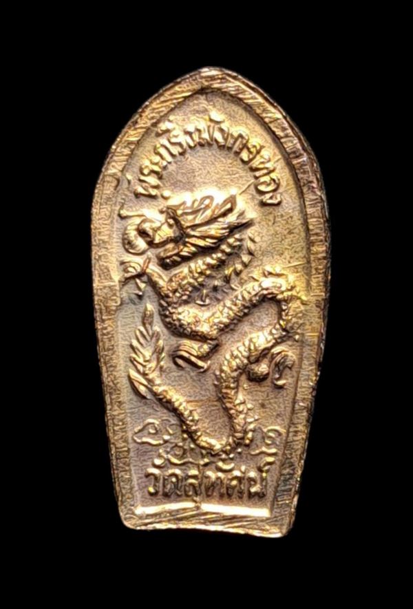 เหรียญพระกริ่งมังกรทอง วัดสุทัศนฯ พิมพ์ใบมะขาม ปี 2543 หลวงปู่หมุนปลุกเสก พร้อมซองเดิม |
