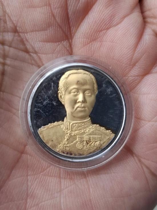 เหรียญร.5(คามิโอ)เนื้อเงินบริสุทธิ์999ขัดเงาอาบทองคำบางส่วน วาระสร้างอาคารกาญจนาภิเษกในหลวงร.9 รพ.เลิดสิน