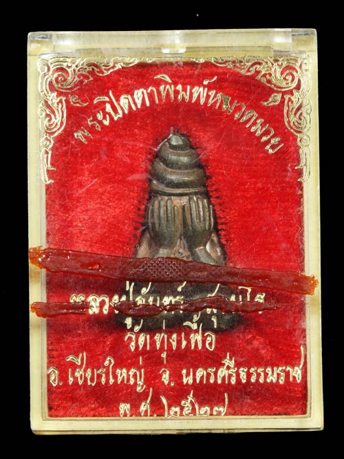 พระปิดตาหมวดมวย เนื้อนวะโลหะ หลวงปู่จันทร์ วัดทุ่งเฟื้อ จ.นครศรีธรรมราช สวย เดิมๆ พร้อมกล่อง