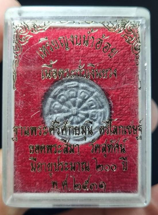 วัดใจเคาะเดียว....120....เหรียญงบน้ำอ้อย เนื้อตระกั่วเงินยวง ฐานพระศรีศักยมุนี ตรีโลกเชษฐ ยอดพระสีมา มีอายุประมาณ 200 ปี วัดสุทัศน์ ปี 2531 พร้อมกล่อง |