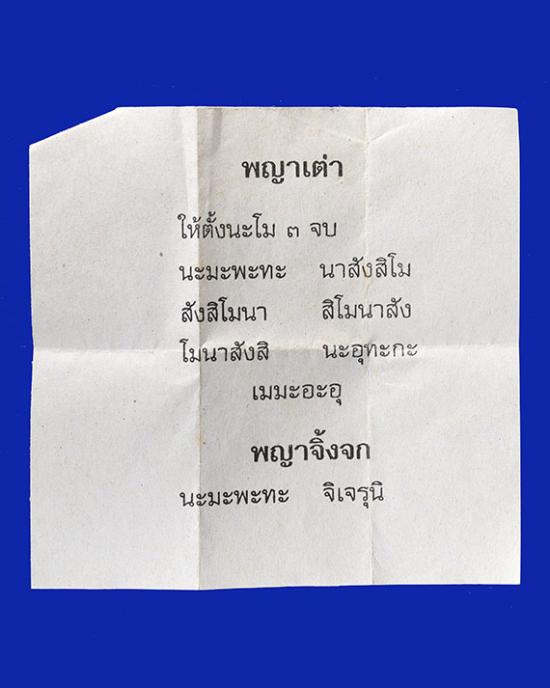 -คาถาที่ใช้กับเต่า หลวงพ่อท่านทำมาครบจริงๆบล็อคสังฆาฏิกลับข้าง (ร้ายกลับกลายเป็นดี) และตอกโค้ดเป็น ยันต์ไว้ที่ด้านหน้า 1 ตัว แล้วนำไปแช่น้ำมนต์ พิธีปลุกเสกเสาร์ 5 ก่อนแจกจ่ายให้พ่อค้าแม่ค้าที่ร่วมกันทำบุญ ที่เหลือจากพิธี อ.ห้อยศิษย์เอกหลวงปู่หลิว ท่านนำที่เหลือทั้งหมดมาแช่น้ำมนต์และปลุกเสกต่ออีกหลายปีแล้วถึงนำออกมาประมาณ ปี41 มอบให้วัดต่างๆ เพื่อนำไปแจกจ่ายให้ชาวบ้านที่มา ร่วมทำบุญและนำเงินมา บูรณะพระอุโบสถ ที่เหลืออีกส่วนนึ่งก้อให้บูชาที่วัดไร่แตงทอง เป็นเนื้อทองเหลืองแต่เนื่องจากแช่น้ำมนต์นานมากจึงแปรสภาพแบบที่เห็น ตอกโค้ด แต่เห็นไม่ชัดครับเพราะคราบจากการแช่น้ำมันต์โค้ดที่ตอก เป็นโค้ต ตัวเดียวกันกับเต่าจักรพรรดิรุ่นแรก