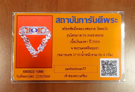 เลสหลวงพ่อรวย วัดตะโก รุ่นไตรมาส59รวย รวย รวย เนื้อเงินลงยา ปี2559 ขนาด นน.รวม 56.4กรัม พร้อมมีบัตรการันตีพระแท้เรียบร้อยแล้วครับ