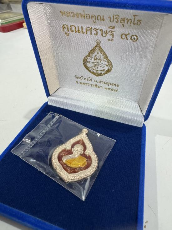 เหรียญหยดน้ำ รุ่นคูณเศรษฐี91 ปี2557 เนื้อเงิน ลงยาสีแดง no.42 มีกล่อง