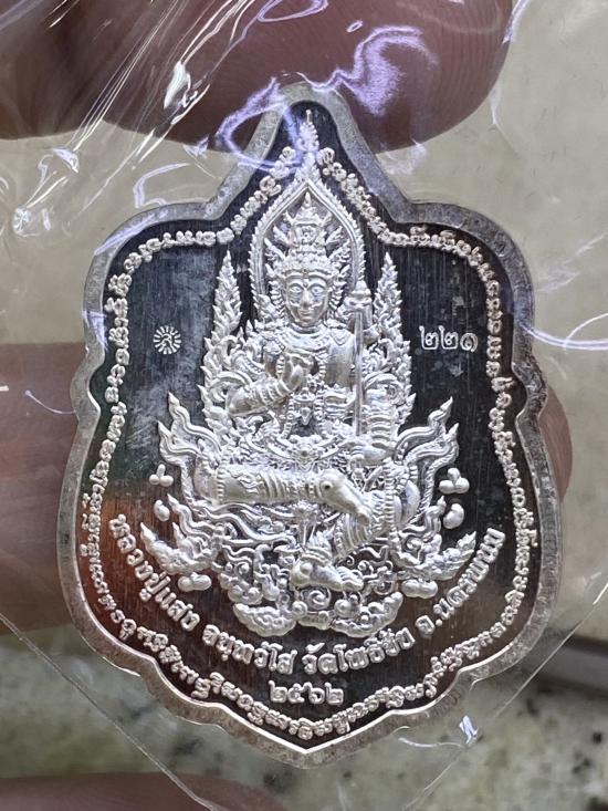หลวงปู่แสง วัดโพธิ์ชัย จ.นครพนม เนื้อเงินลงยา เลข 221 สวย กล่อง