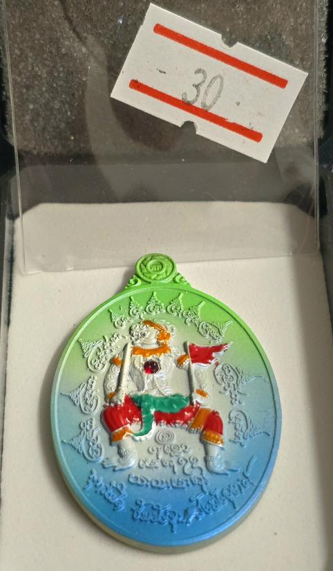 เหรียญหนุมาน"โชคเหนือเมฆ" หลวงปู่มหาศิลา สิริจันโท เมตตาอธิฐานจิตและเขียนอักขระยันต์ให้ จัดสร้างโดย กรมทหารพรานที่ 26 (ค่ายปักธงชัย) เนื้อตะปูสังขวานร เพ้นพื้นฟ้า-เขียวสะท้อนแสง ลงยาเครื่องทรง ฝังพลอ |