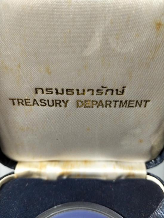 เหรียญในหลวง ร.9 กาญจนาภิเษก 150 บาท เนื้อเงินขัดเงา 1 เหรียญพร้อมกล่อง (ฝากล่องด้านบนมีชำรุด)
