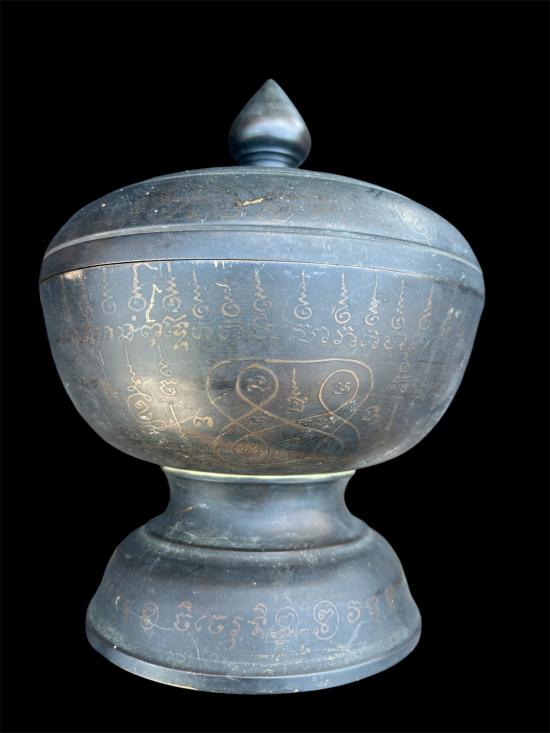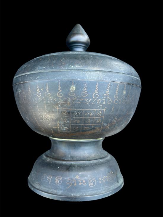 พระบูชา ขันน้ำมนต์ ในขันมีพระกริ่ง 3 องค์ กว้าง 7 นิ้ว สูง 9 นิ้วครึ่ง ไม่ทราบสำนัก