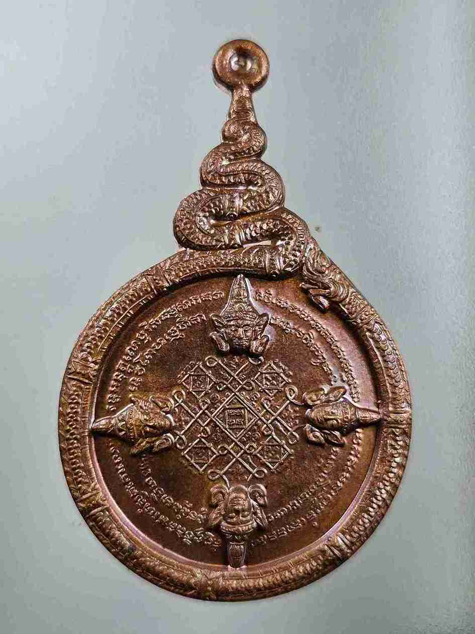 เหรียญพรหม 9 ยอด พิธีเป่ายันต์พรหมสี่หน้าครั้งที่ 9 หลวงพ่อชำนาญ วัดบางกุฏีทอง จ.ปทุมธานี พ.ศ.2552 เนื้อทองแดง​ |