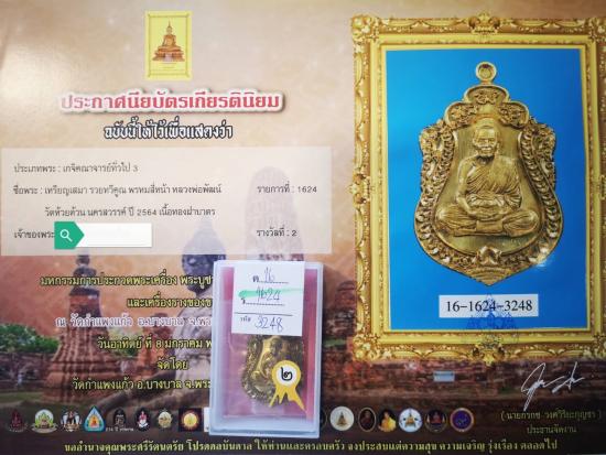 เหรียเสมา รุ่น รวยทวีคูณพรหมสี่หน้า หลวงพ่อพัฒน์ วัดห้วยด้วน นครสวรรค์ ปี 2564 เนื้อทองฝาบาตร รองแชมป์ สภาพสวย พร้อมใบประกาศ |