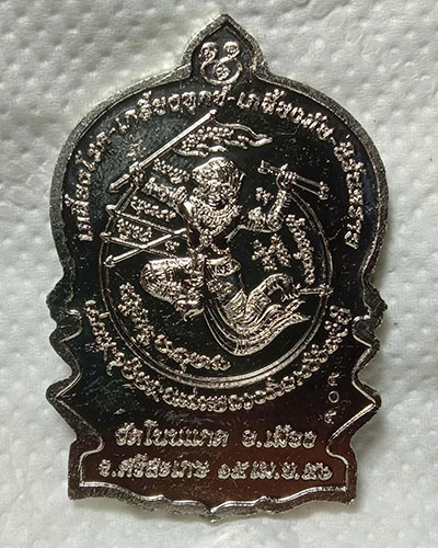 เหรียญนั่งพานชนะมาร หลังหนุมานเชิญธงชนะศึก หลวงปู่เกลี้ยง วัดโนนแกด รุ่น"ชนะมาร" เนื้ออัลปาก้า สร้าง 2556 เหรียญ