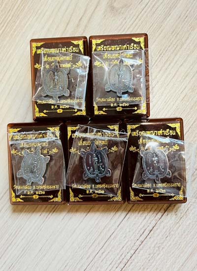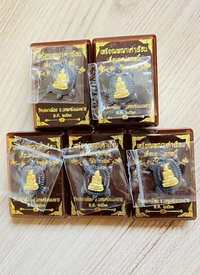 วัดใจ เหรียญพญาเต่าเรือน วัดเสมาเมือง จ.นครศรีธรรมราช เนื้อทองแดงรมดำหน้ากากทองทิพย์5 เหรียญ |