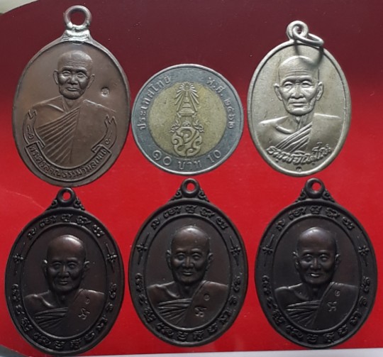 เหรียญหลวงปู่ม่น วัดเนินตามาก ชลบุรี เนื้อทองแดง 4 เหรียญ/อัลปาก้า 1 เหรียญ เคาะเดียวแดง |