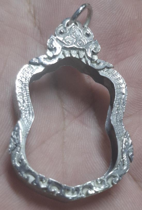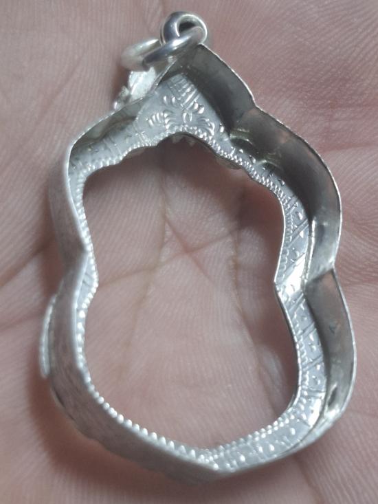 กรอบเงินมือสอง งานมือ ใส่เหรียญเสมาขุดสระ หลวงปู่หงษ์ สภาพสวยครับ |