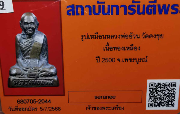 รูปเหมือนหลวงพ่ออ้วน วัดดงขุย เนื้อทองเหลือง ปี2500 จ.เพชรบูรณ์ + บัตรG-pra สภาพเดิมค่ะ สภาพตามรูปทุกประการค่ะ