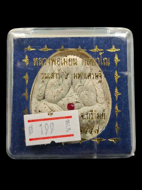พระปิดตาปิดทวาร หลังหุ่นพยนต์ พิมพ์ใหญ่ เนื้อว่านขาว ฝังพลอย ฝังตะกรุดเงิน 2 ดอก จีวร เกศา รุ่น เสาร์ 5 มหาเศรษฐี หลวงพ่อเมียน วัดบ้านจะเนียง จ.บุรีรัมย์ ปี 2557 no.1 |