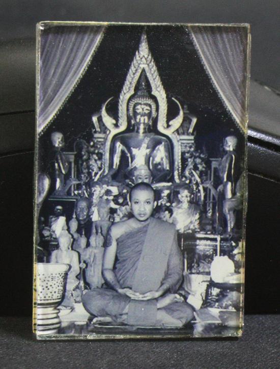 รูปถ่ายอัดกระจก เป็นรูปถ่ายขาวดำ หลวงพ่อชำนาญ วัดบางกุฏีทอง อัดกระจก ในอิริยาบทนั่งหน้าพระพุทธชินราช หายากแล้วครับ ขนาด 3x4 cm
