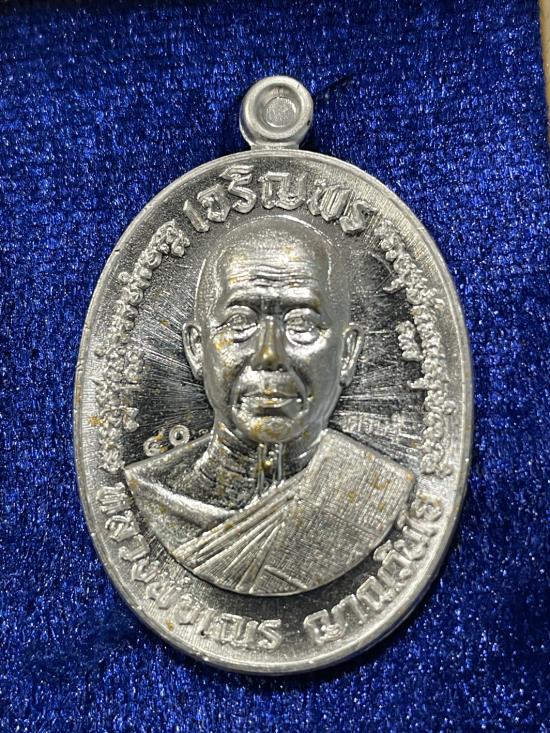 เหรียญเจริญพรบน หลวงพ่อเณร วัดทุ่งเศรษฐี เนื้อเงินหมายเลข 40 มีพรายทอง ปี 2567 พร้อมกล่อง
