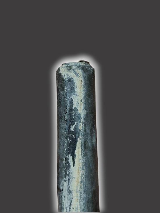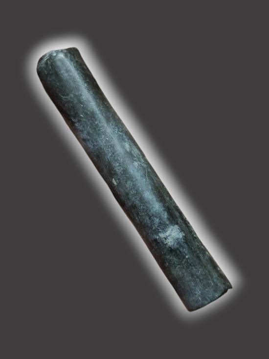 A1256.ตะกรุดเก่า เนื้อตะกั่ว ม้วนหนาๆ ไม่ทราบที่ ยาว 2 นิ้ว เคาะเดียวเเดง |