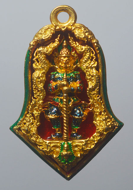 เหรียญหล่อพุทธศิลป์ ท้าวเวสสุวรรณโณ พิมพ์จำปี 2565 หลวงพ่ออิฎฐ์ วัดจุฬามณี จ.สมุทรสงคราม เนื้อมหาชนวนอาบทองคำ ลงยาสี พิมพ์เล็ก 2.5 เซน โค๊ด เลข 3645 |
