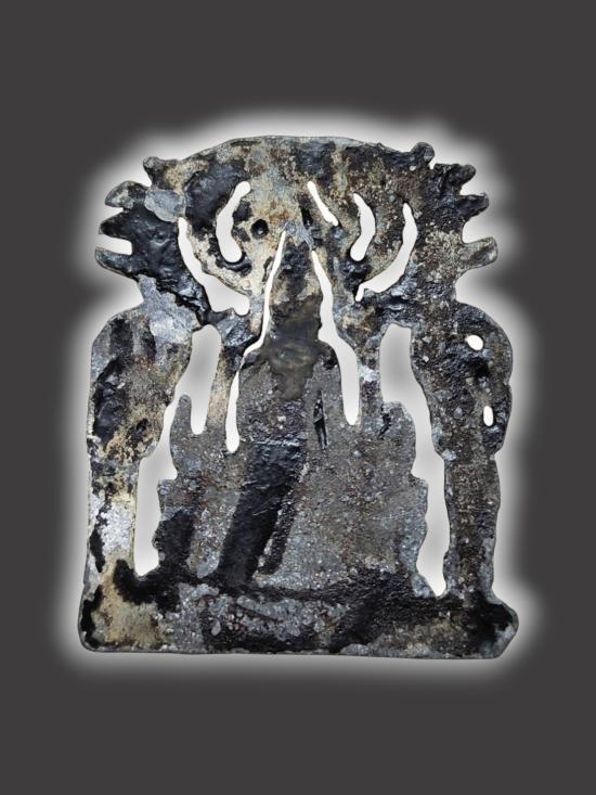 A1314.วัดใจ พระกรุเนื้อชิน สภาพตามรูป กว้าง1.5นิ้ว สูง2นิ้ว เคาะเดียวเเดง |