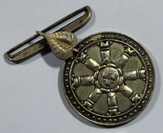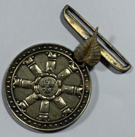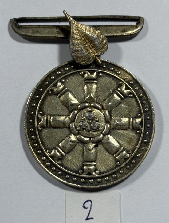 เหรียญเงินธรรมจักร 25 พุทธศตวรรษ ปี 2500 เนื้อเงิน กะไหล่ทอง สภาพใช้สวยตามรูป