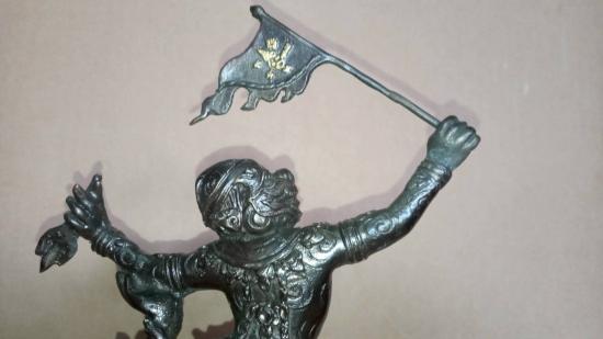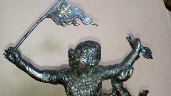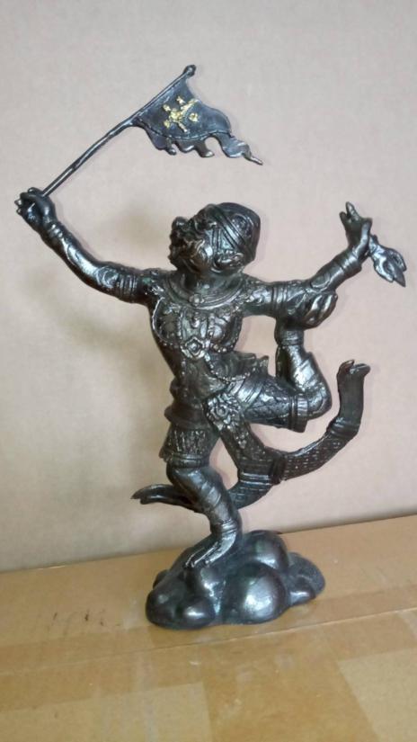 หนุมานเชิญธง ขนาดบูชา ฝังตะกรุด2ดอกที่ใต้ฐานแต่ตงละมุม ความสูงฐานถึงหัว 6 นิ้ว ถ้าวัดถึงยอดธงสูง 9 นิ้ว กฐินปี 59 หลวงพ่อเพี้ยน วัดเกริ่นกฐิน จ.ลพบุรี