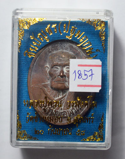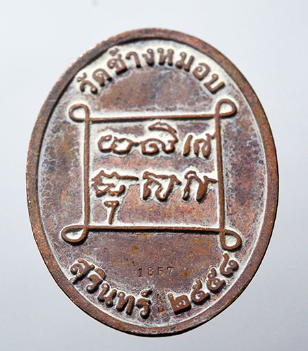 เหรียญหล่อชินบัญชร (ปฐมฤกษ์ ) 58 หลวงพ่อพวน วัดช้างหมอบ จ.สุรินทร์ เนื้อชนวน หลังยันต์ โค๊ด เลข 1857 |