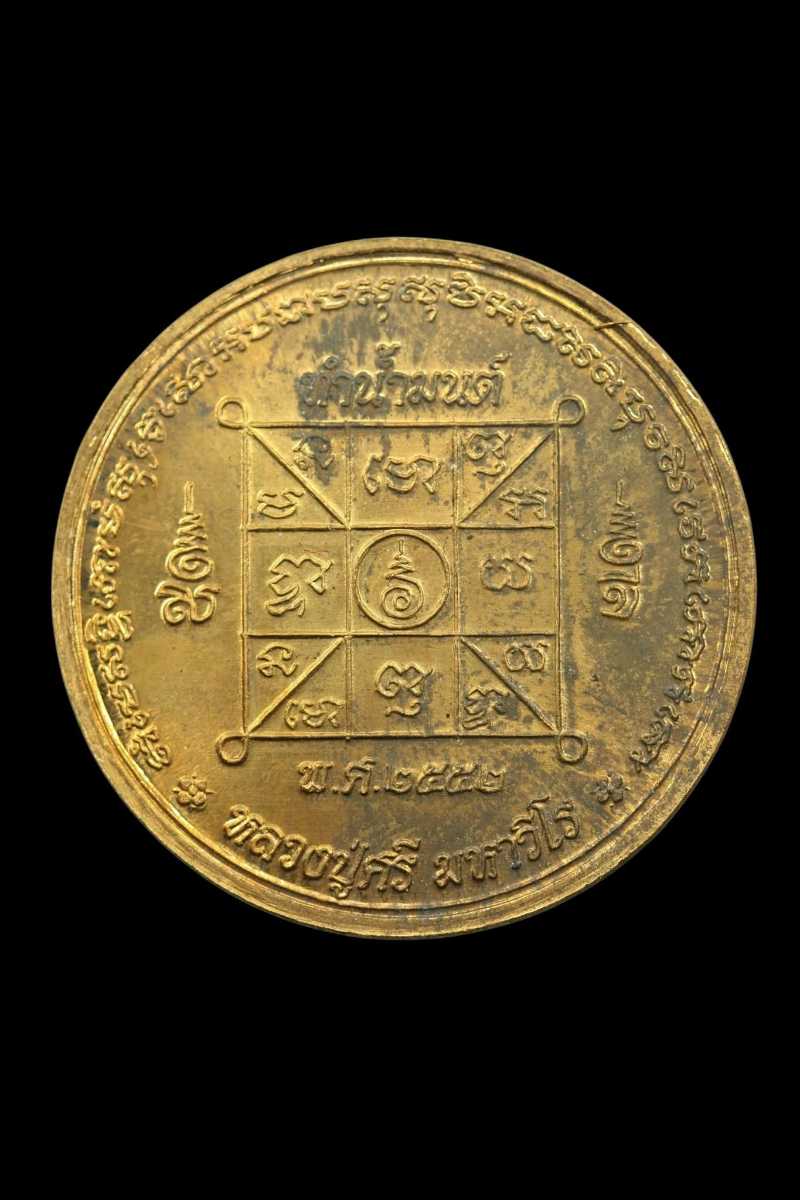 เหรียญทำน้ำมนต์หลวงปู่ศรี มหาวีโร วัดป่ากุง ร้อยเอ็ด รุ่นแรก ปี ๒๕๕๒ เนื้อสัมฤทธิ์ พิมพ์ยันต์นะมหาเศรษฐี |