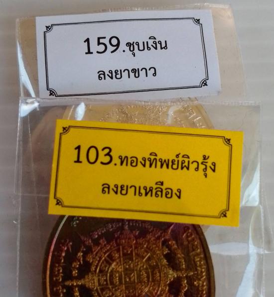 เหรียญสารพัดเจริญ หลวงพ่อช้างวัดจุกเฌอแปดริ้ว ปี 66 เนื้อชุบเงินลงยาขาว และเนื้อทองทิพย์ผิวรุ้งลงยาเหลือง รวมรับจำนวน 2 เหรียญ พร้อมกล่องเดิม สภาพสวย |