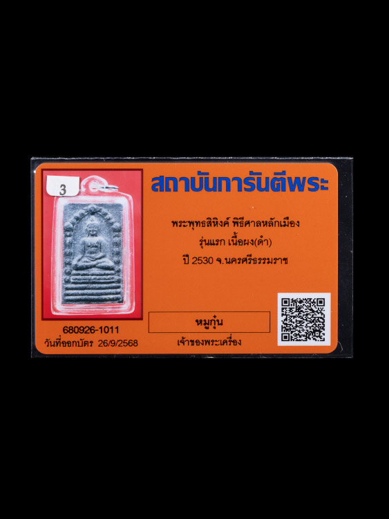 ชื่อพระเครื่อง พระพุทธสิหิงค์ พิพธีศาลหลักเมือง "รุ่นแรก" พร้อมบัตรรับรองจากเว็ป ผมไม่ทราบที่ ยี่ห้อรุ่นครับ พระรังเก่า ชุดนี้ผมไปเหมาบ้านที่กรุงเทพฯมา ได้มาหลายอย่าง ทยอยลงครับ วัดใจเท่าไหนเท่านั้นทุกรายการครับ