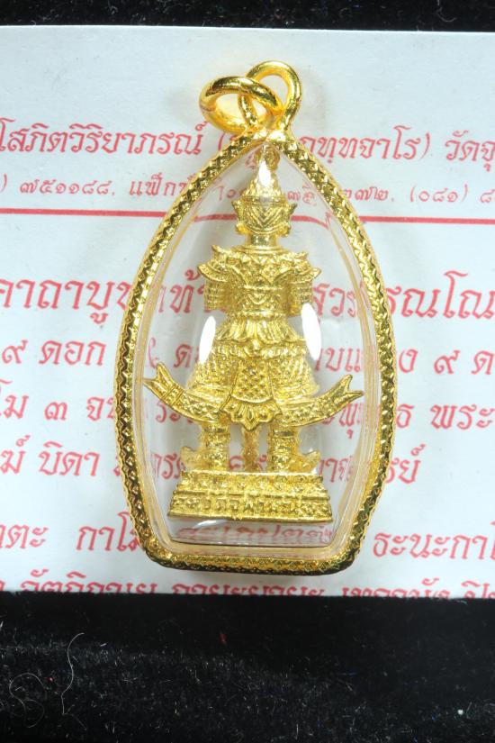** 100 เดียวพร้อมเลี่ยมไมครอน **ท้าวเวสสุวรรณฯ วัดจุฬามณี รูปหล่อขนาดห้อยคอ หน้าเทพ เนื้อทองทิพย์ ปี 2562///18 |