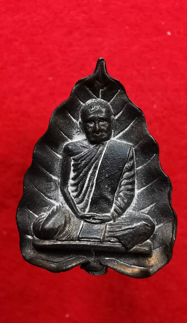 รูปหล่อเหมือนใบโพธิ์ หลวงปู่แหวน สุจิณโณ ปี 20 เนื้อนวะ ตอก2โค๊ต เดิม ๆ