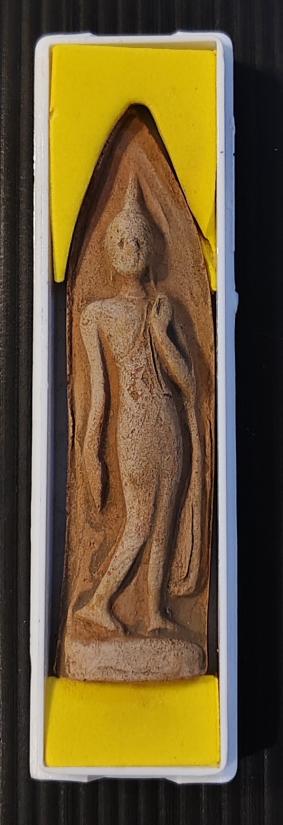 พระลีลาถ้ำหีบ เนื้อดินเผา หลวงพ่อชำนาญ วัดบางกุฎีทอง จ.ปทุมธานี ปี 2546 พร้อมกล่องเดิม