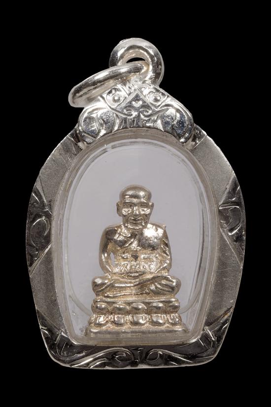 เคาะเดียว รูปหล่อลอยองค์ หลวงพ่อทวด วัดช้างให้ พระอาจารย์นอง ปลุกเศก พิมพ์จิ๋ว หัวไม้ขีด แขนทะลุ นิยม ปี 2535 เนื้อเงิน เลี่ยมเงินสวยๆ |