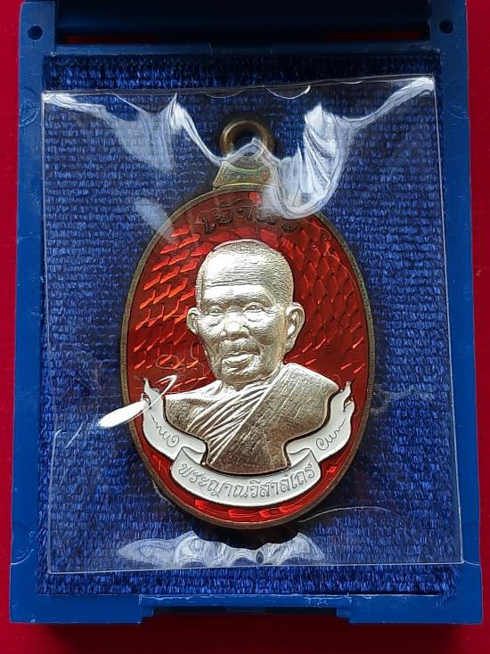 เหรียญห่วงเชื่อม รุ่นแรก "เจ้าสัว มหามงคล" พระญาณวิสาลเถร (หลวงปู่หา สุภโร) หรือ หลวงปู่ไดโนเสาร์ วัดสักกะวัน(ภูกุ้มข้าว) อ.สหัสขันธ์ จ.กาฬสินธุ์ ปี ๒๕๖๓ เนื้อนวโลหะ หน้ากากเงิน คุ้ยพื้นลงยาสีส้ม(แสด) ลงยาโบว์ขาว ด้านหน้าตอกโค๊ต จีน ด้านหลังตอกโค๊ต เลข ๑๕๓ คัดเก็บผิวสวยเดิม จมูกโด่ง พร้อมกล่องเดิมครับ