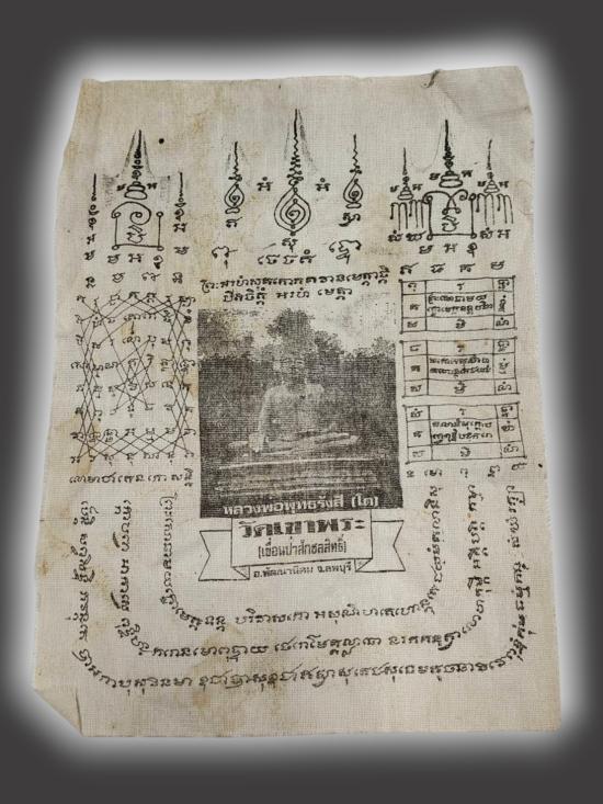 A1384.ผ้ายันต์ หลวงพ่อพุทธรังสี(โต) วัดเขาพระ ลพบุรี เคาะเดียวเเดง |