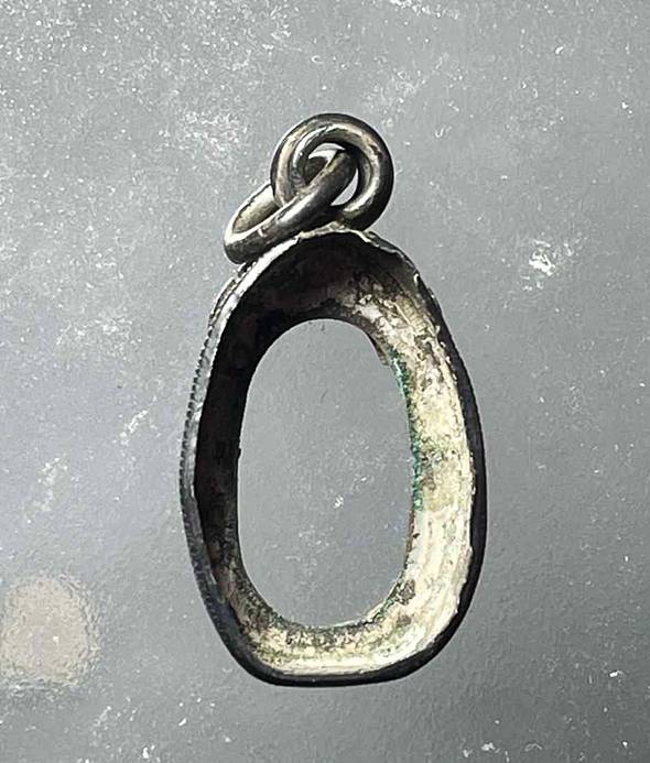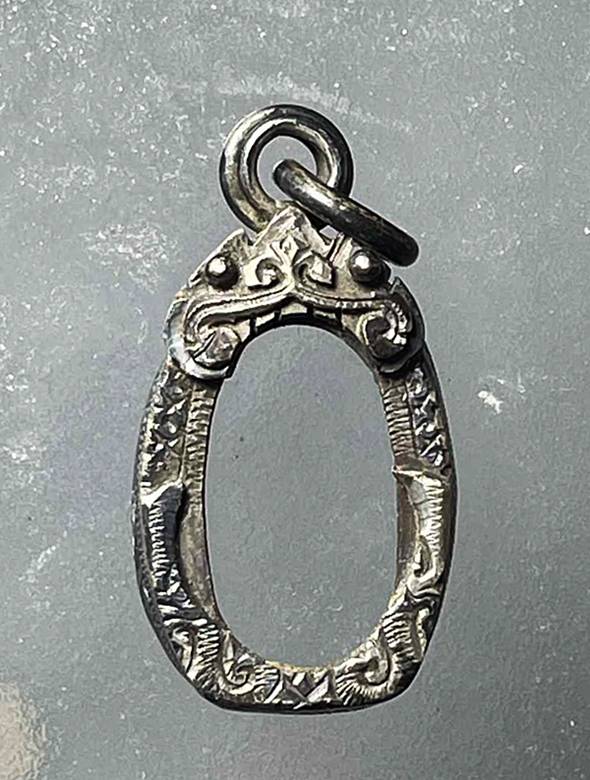 กรอบเงินเก่า มือสอง ใส่ปรกมะขาม ขนาด 2.5x4 cm สภาพดีครับ...วัดใจ