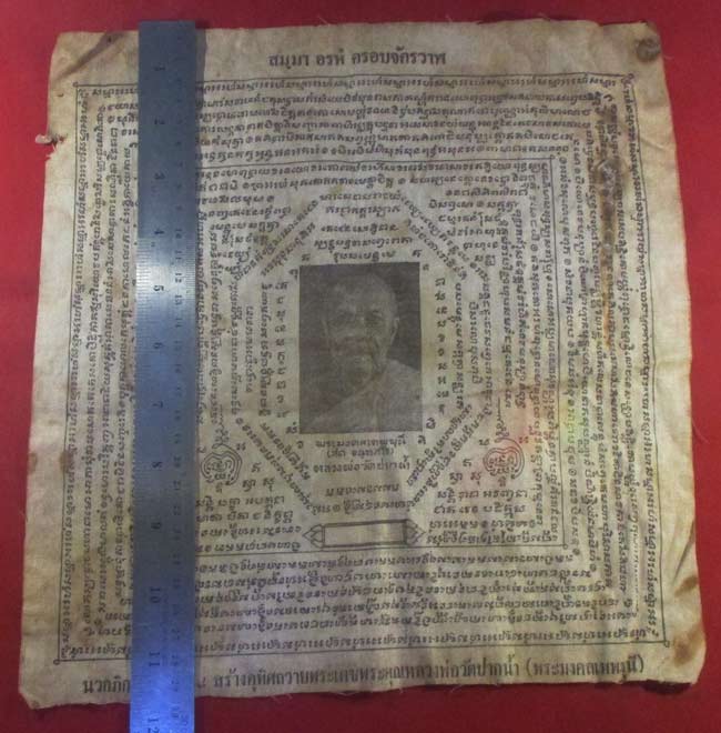 ผ้ายันต์ นวกภิกษุ ปี ๒๕๑๘ สร้างอุทิศถวายพระเดชพระคุณหลวงพ่อวัดปากน้ำ (พระมงคลเทพมุนี) ครับ (พระบ้าน ครับ) |