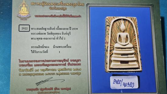 พระสมเด็จฐานแซม เนื้อผงลาย หลวงพ่อแพ วัดพิกุลทอง จ.สิงห์บุรี พร้อมใบประกาศติดรางวัลที่ 1 งานสามพราน ปี 2567 (2) |