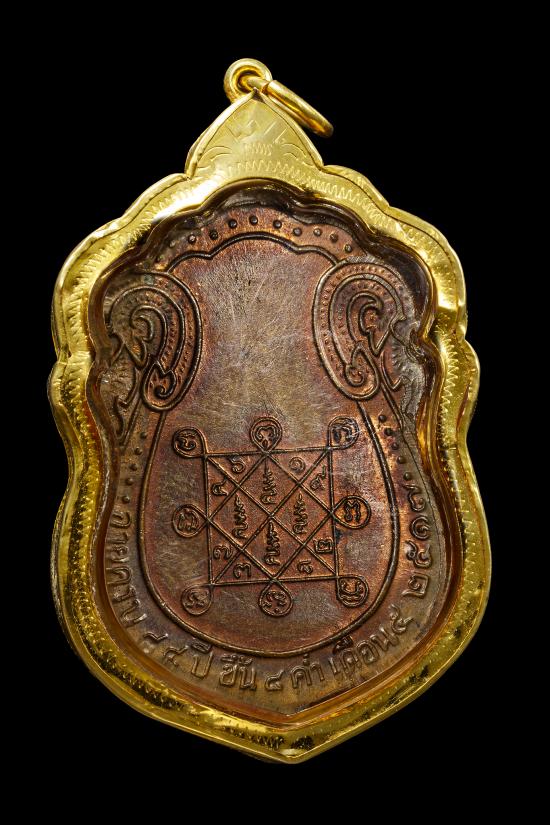 เหรียญเสมา หลังยันต์ตรี ปี 2017 เนื้อทองแดง สภาพสวย พร้อมเลี่ยมทอง