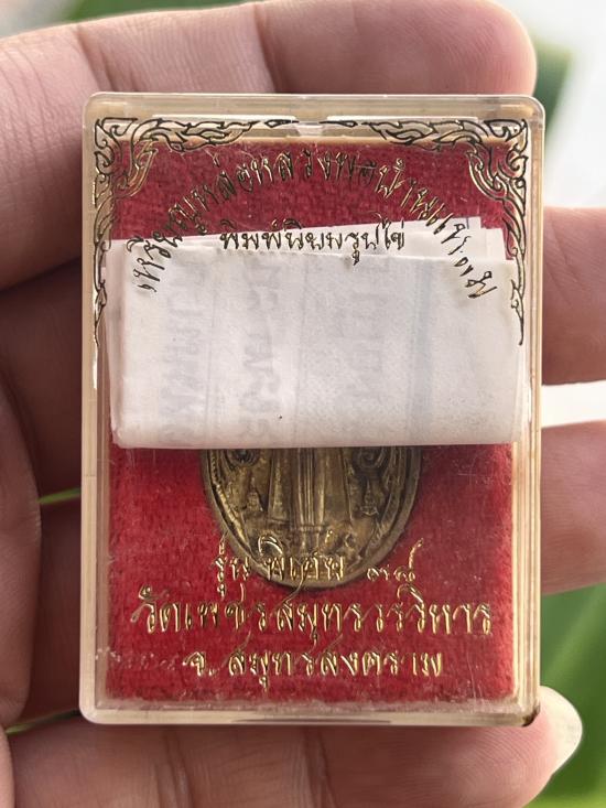 เหรียญหล่อ หลวงพ่อบ้านแหลม พิมพ์นิยมรูปไข่ รุ่นพิเศษ ปี 2538 วัดเพชรสมุทรวรวิหาร สมุทรสาคร พร้อมกล่องเดิม |